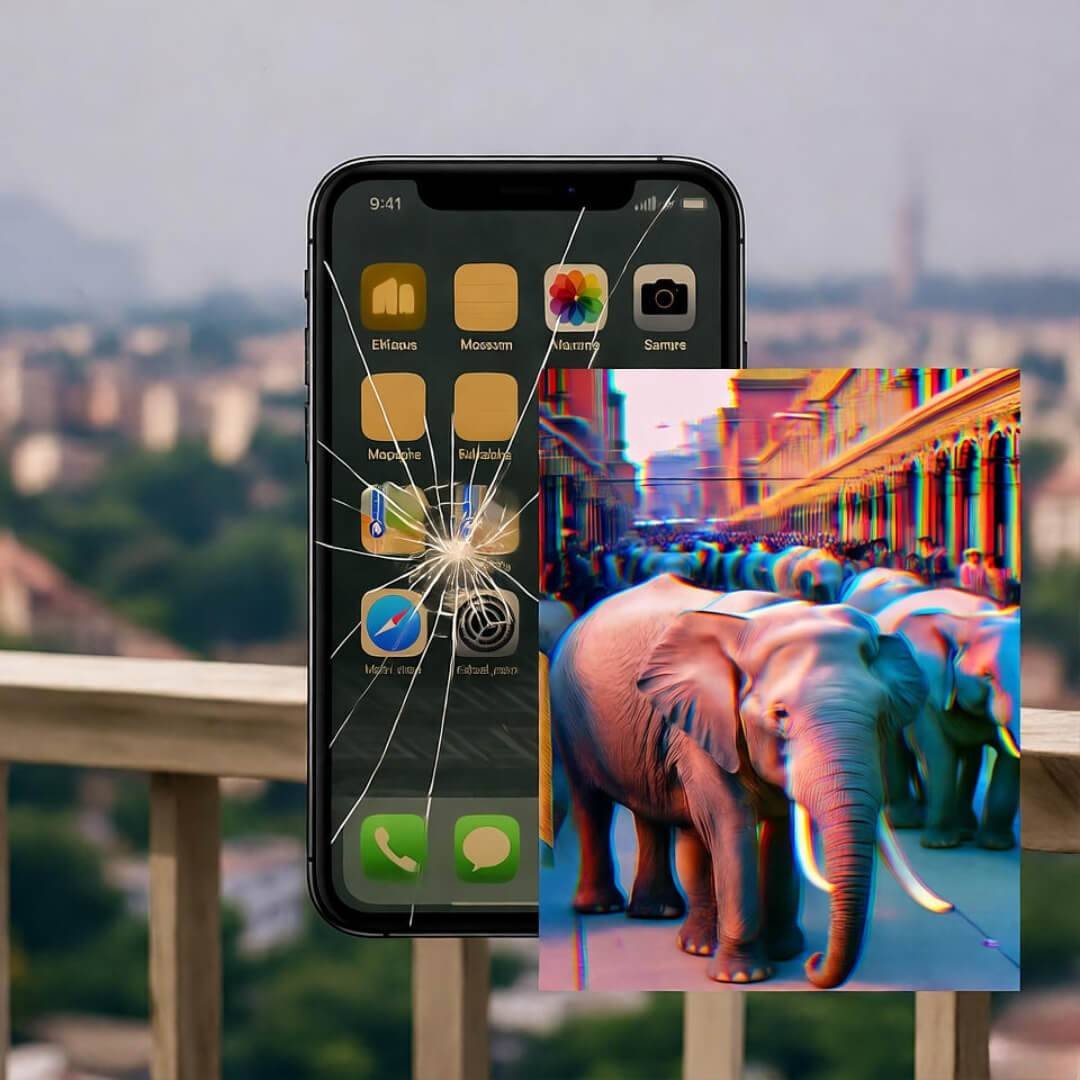 Scattered gold app chaos on wet table, 2025